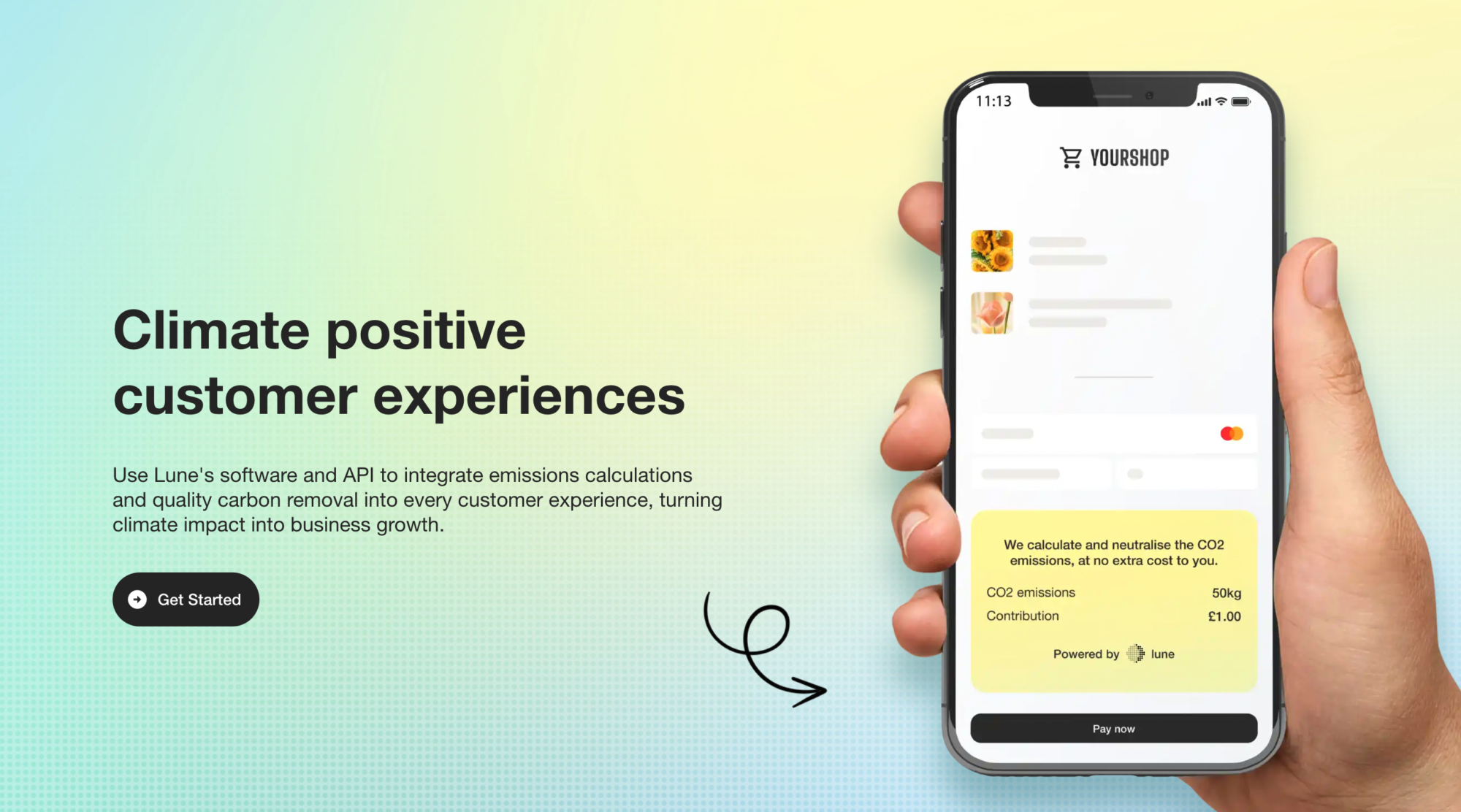Climate positive customer experiences. Use Lune's software and API to integrate emissions calculations and quality carbon removal into every customer experience, turning climate impact into business growth.